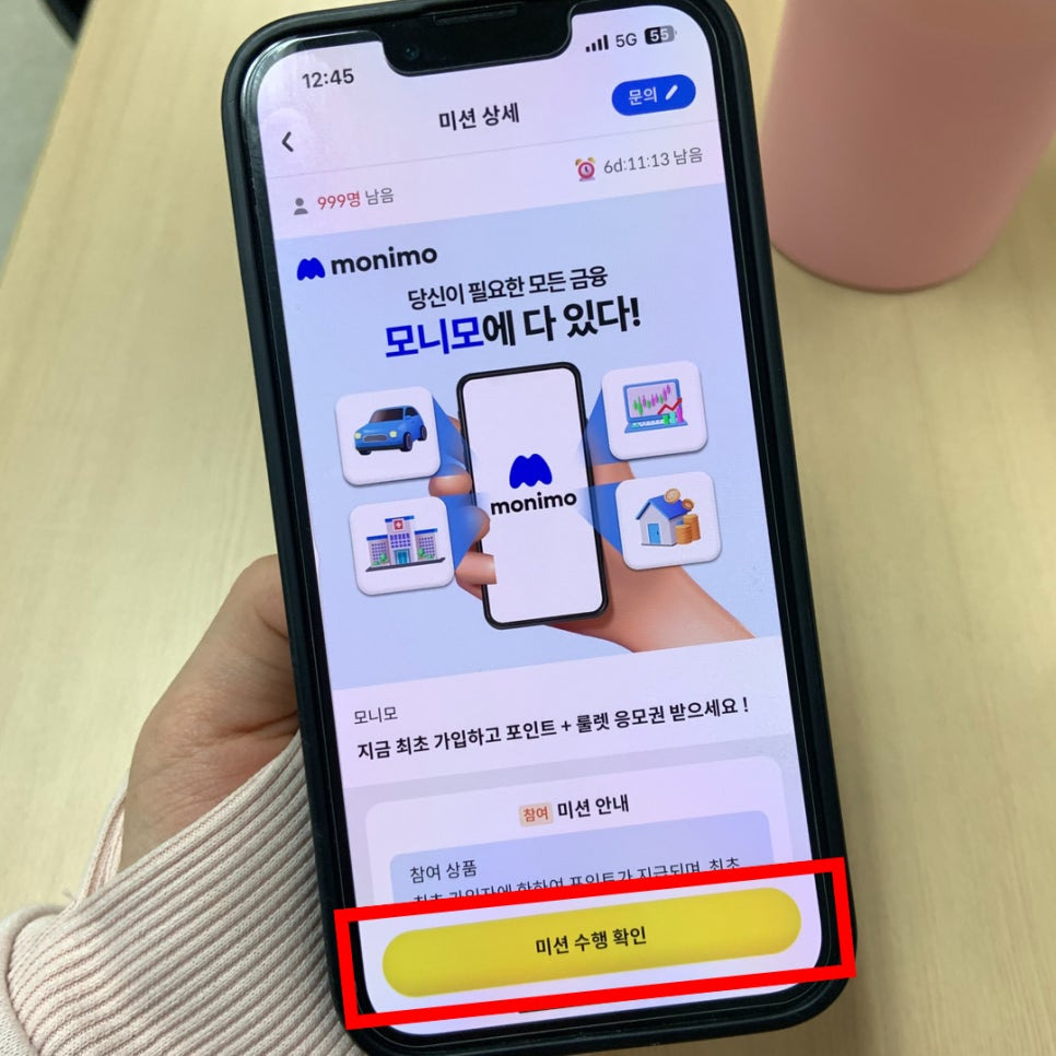 ✅ STEP 2. [미션 도전] 버튼 클릭후 연결된 링크를 통해 모니모 앱 설치 및 회원가입 완료하기